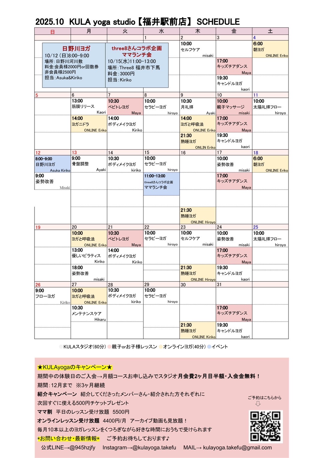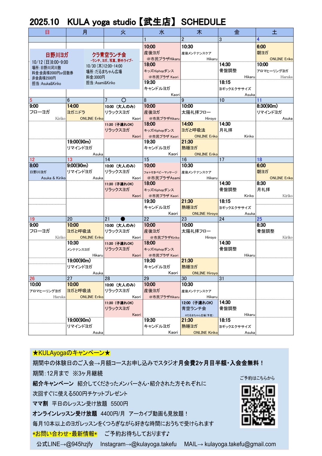 🌿スタジオ・オンラインレッスンスケジュール🌿