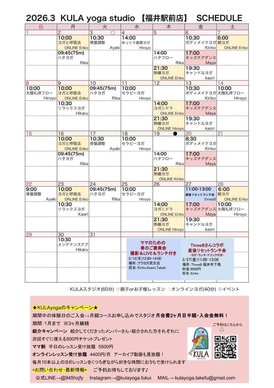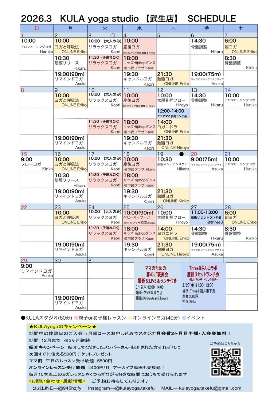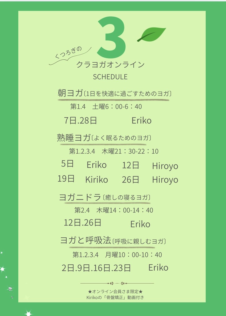 🌿スタジオ・オンラインレッスンスケジュール🌿