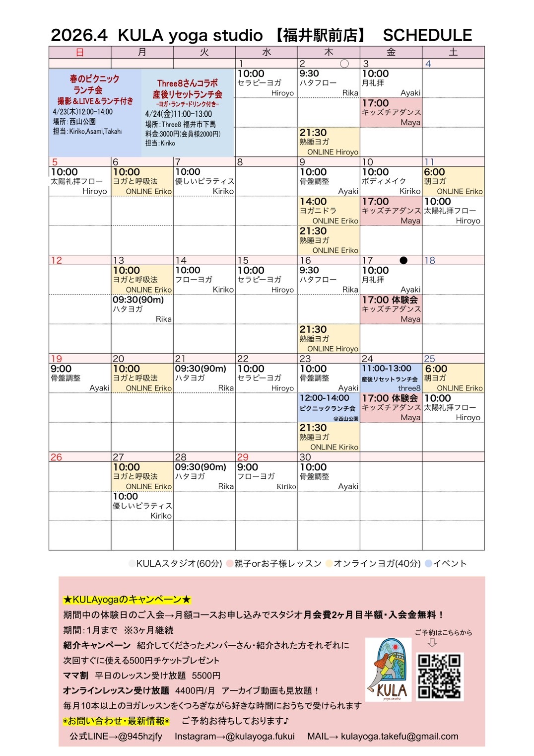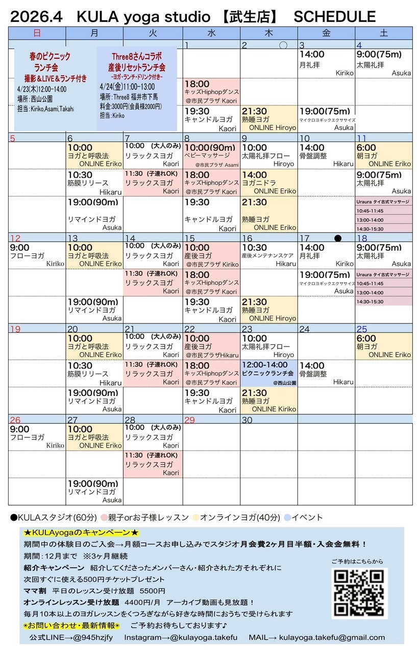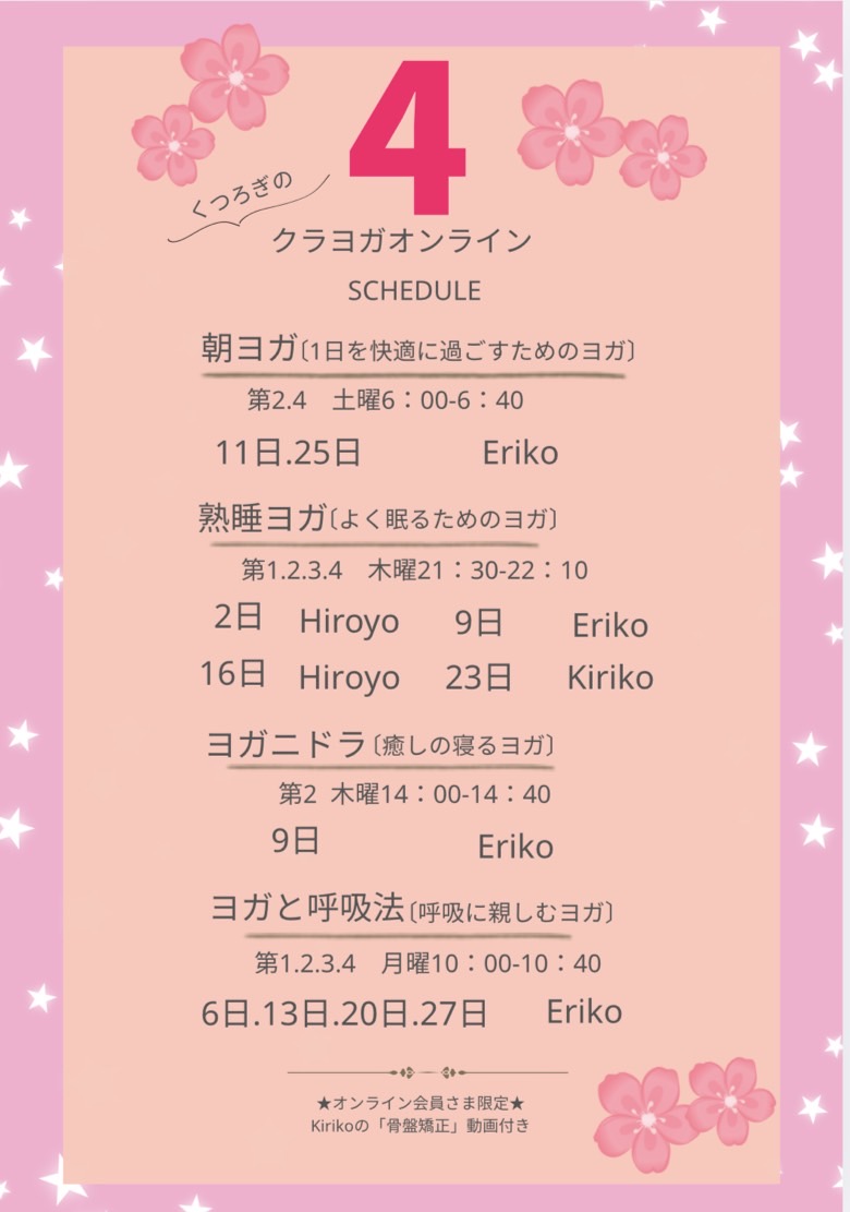 🌿スタジオ・オンラインレッスンスケジュール🌿